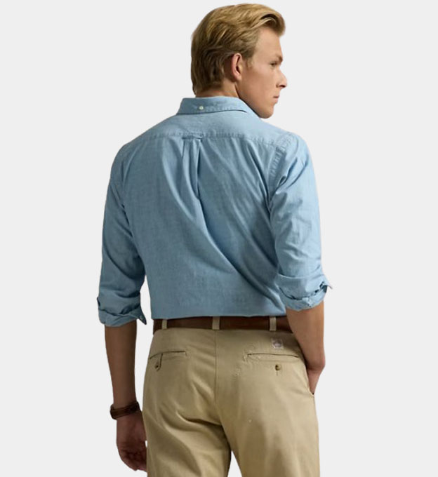 Classic Fit: Cut Fuller Through The Chest, Waist And Sleeve, With A Lower Armhole. Size Medium Has A 77.5 Cm Back Body Length, A 46.4 Cm Shoulder, A 116.8 Cm Chest And An 87.6 Cm Sleeve Length. Sleeve Length Is Taken From The Center Back Of The Neck And Changes 2.54 Cm Between Sizes. Button-Down Collar With A Buttoned Closure At The Back. Buttoned Half-Plate. Genuine Mother Of Pearl Buttons. Long Sleeves With Buttoned Barrel Cuffs. Left Chest Buttoned Pocket. Split Back Yoke With A Box Pleat Ensures A Comfortable Fit And A Greater Range Of Motion. Signature Embroidered Pony On The Right Hem. 100% Cotton. Machine Washable. Imported. Dyed With Indigo, Which May Rub Off Onto Fabrics, Leather And Upholstery. Model Is 185 Cm And Wears A Size Medium. Style Number: 656903.